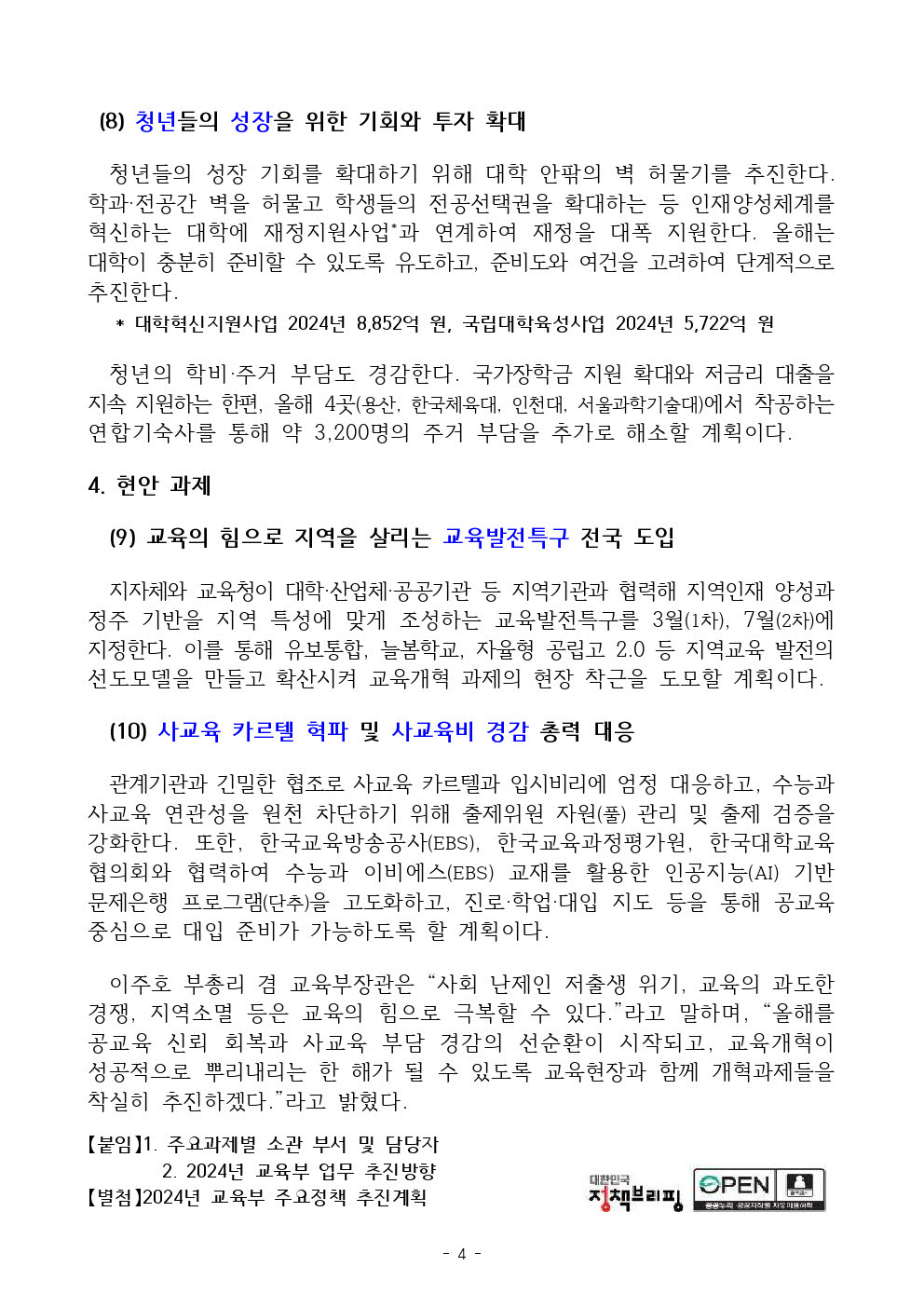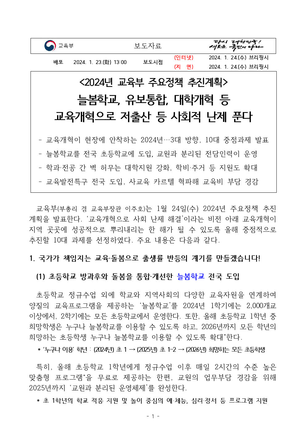 2024³â ±³À°ºÎ ÁÖ¿äÁ¤Ã¥ ÃßÁø°èȹ (º¸µµÀÚ·á) ÀÔ´Ï´Ù.